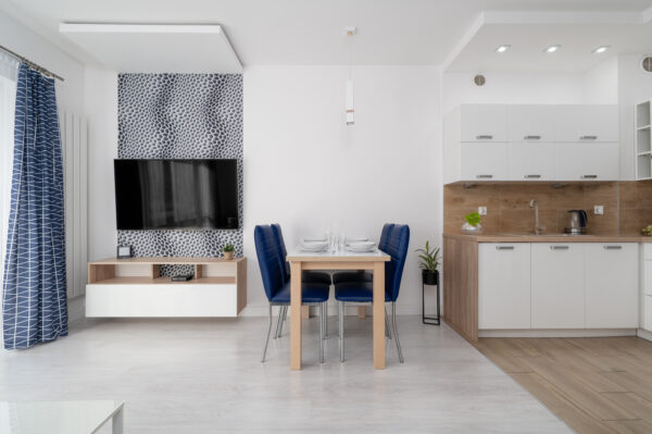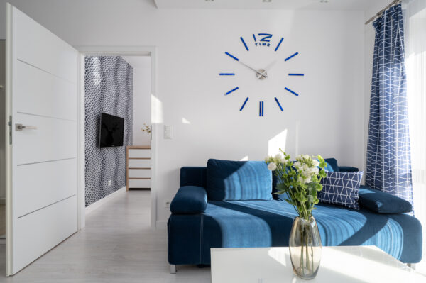 Apartament Retro Deluxe z sauną to przestronny apartament 2-pokojowy o powierzchni 48 m², położony na trzecim piętrze budynku z windą. Wnętrze zostało urządzone w charakterystycznym stylu retro, z dbałością o detale i przyjemną atmosferę sprzyjającą wypoczynkowi.