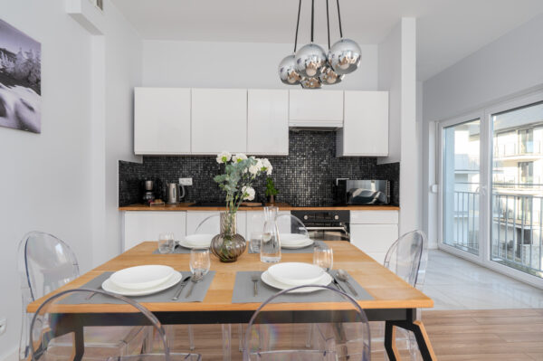 Apartament jest kompletnie wyposażony, co zapewnia wygodę zarówno przy krótszych, jak i dłuższych pobytach.